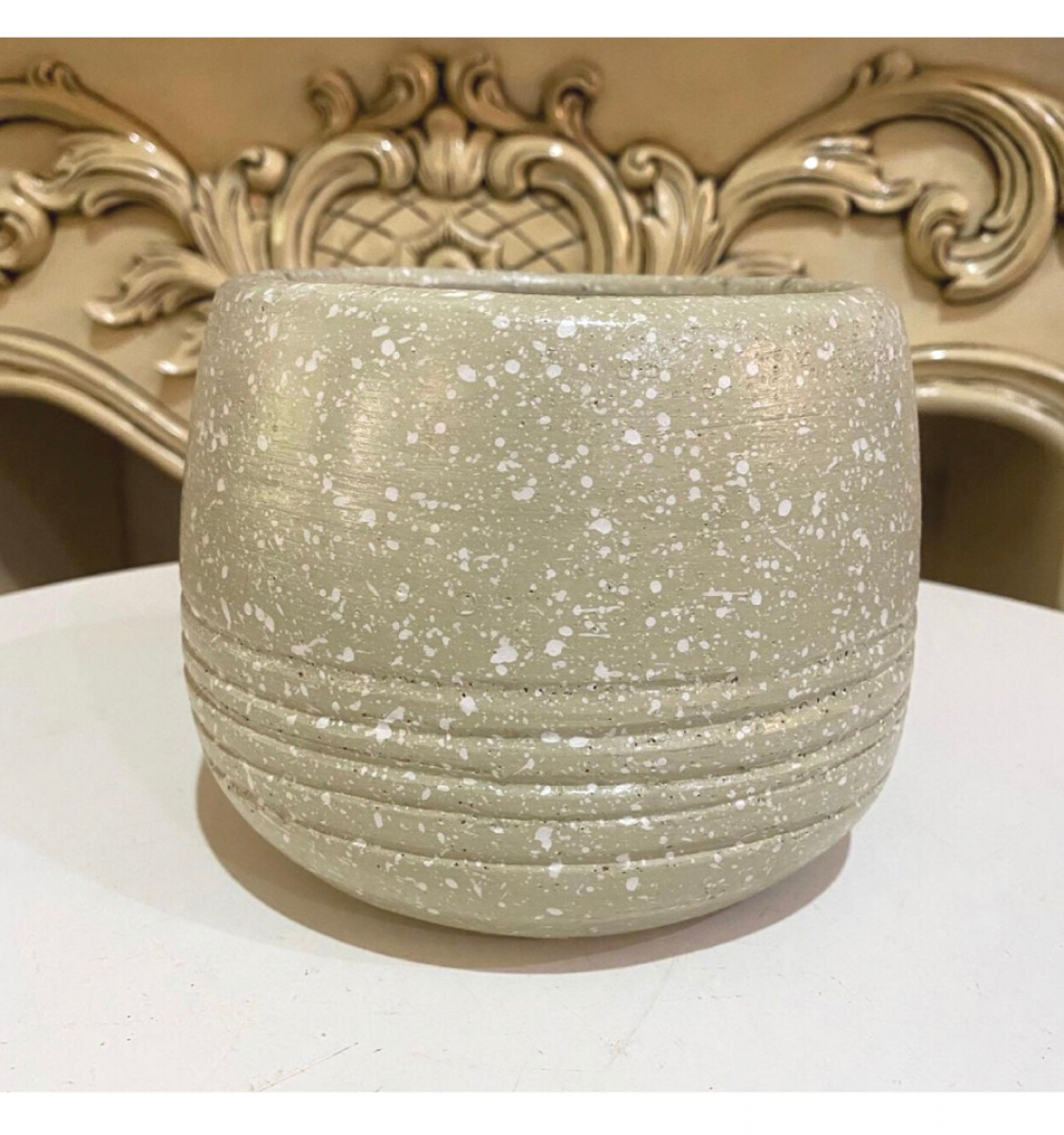 Pot handmade berbahan dasar tanah liat dengan motif marble kehijauan.