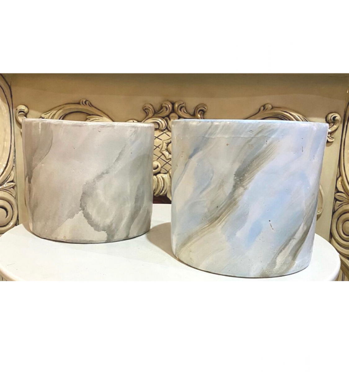 Pot handmade yang terbuar dari tanah liat. Dicat dengan motif marmer yang cantik.